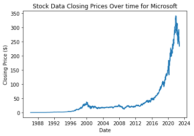 Create a simple program to acquire historical stock data using a stock tinker using Yahoo Finance.
